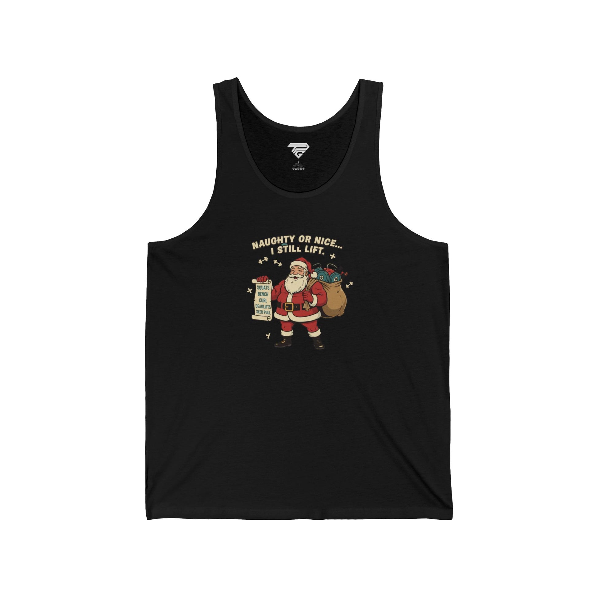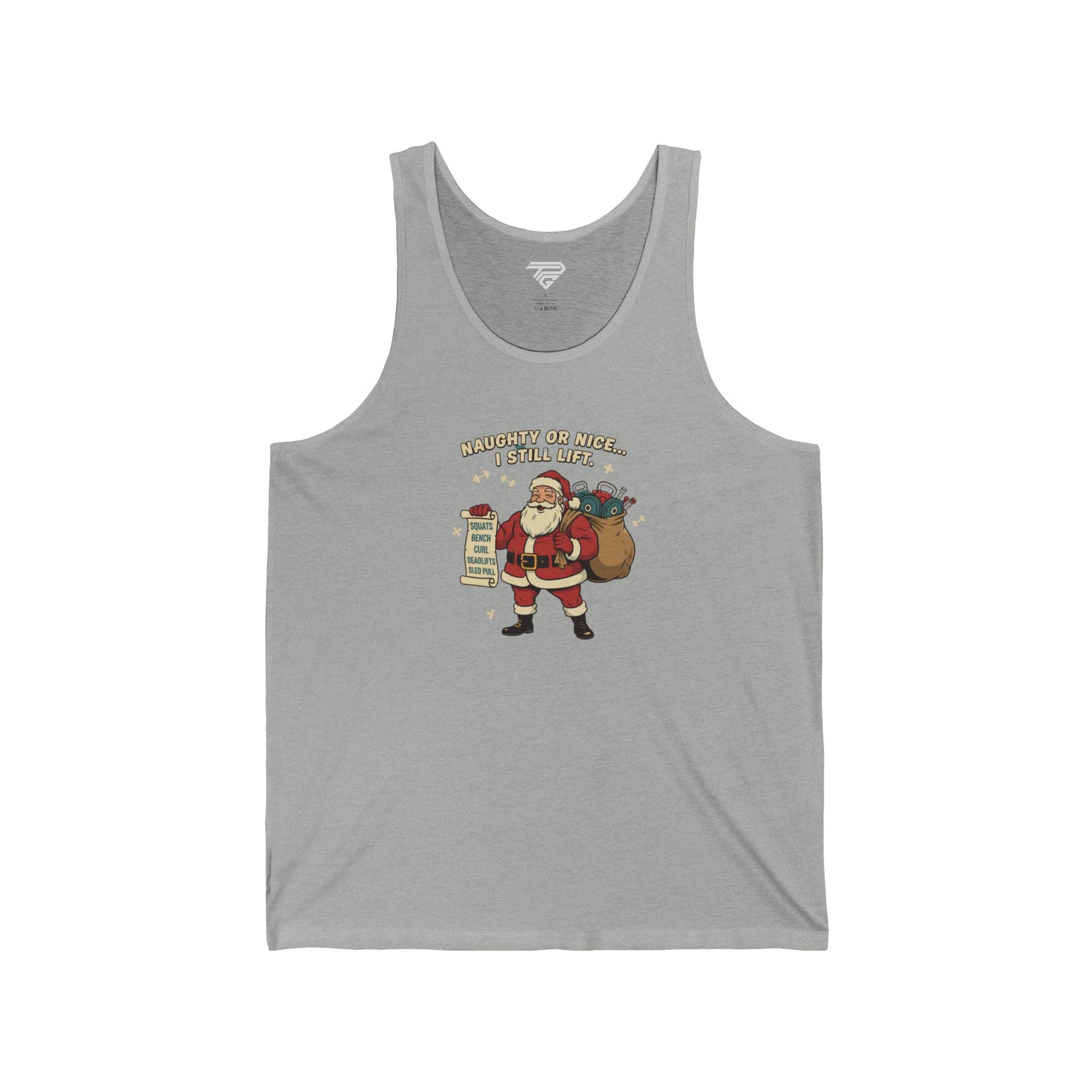 Light and easy, this tank brings a warm, playful twist to holiday layers. A cheerful Santa graphic—list in hand, sack over shoulder—feels like a wink from someone who knows how to celebrate without taking things too seriously. The slim retail cut and soft Airlume cotton drape close to the body, making it a great top for brisk morning walks, layering under an open flannel, or lounging with cocoa after stringing lights. It’s casual, comfortable, and made to be worn again and again through seasonal gatherings and laid-back winter days.