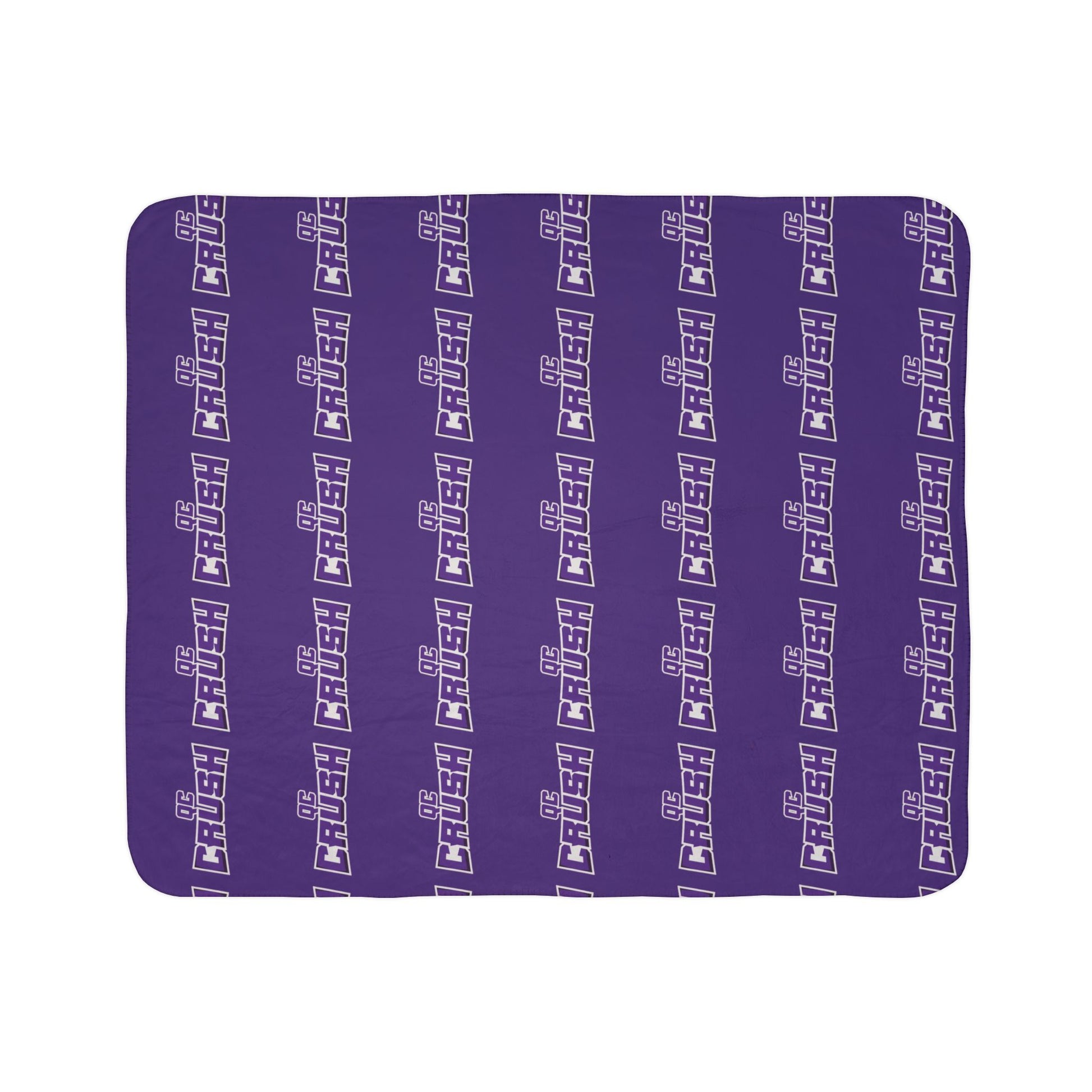 Wrap yourself in a deep, cozy hug with this plush sherpa fleece blanket. The rich purple field is stamped with a bold repeating wordmark that feels playful and confident — a piece that brings personality to game day
