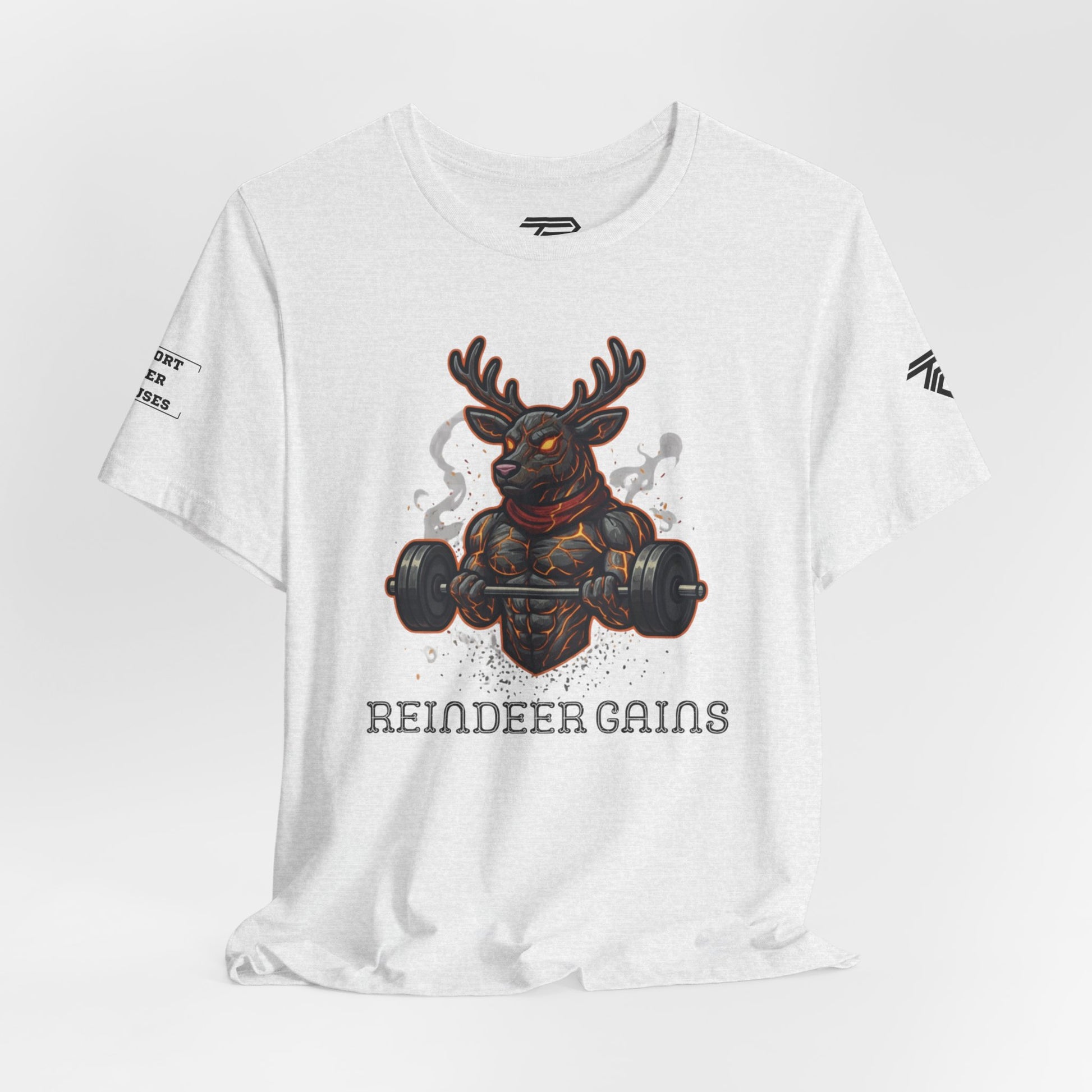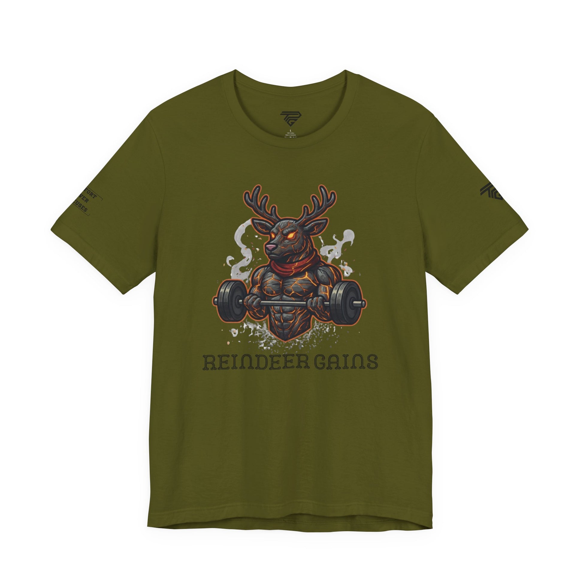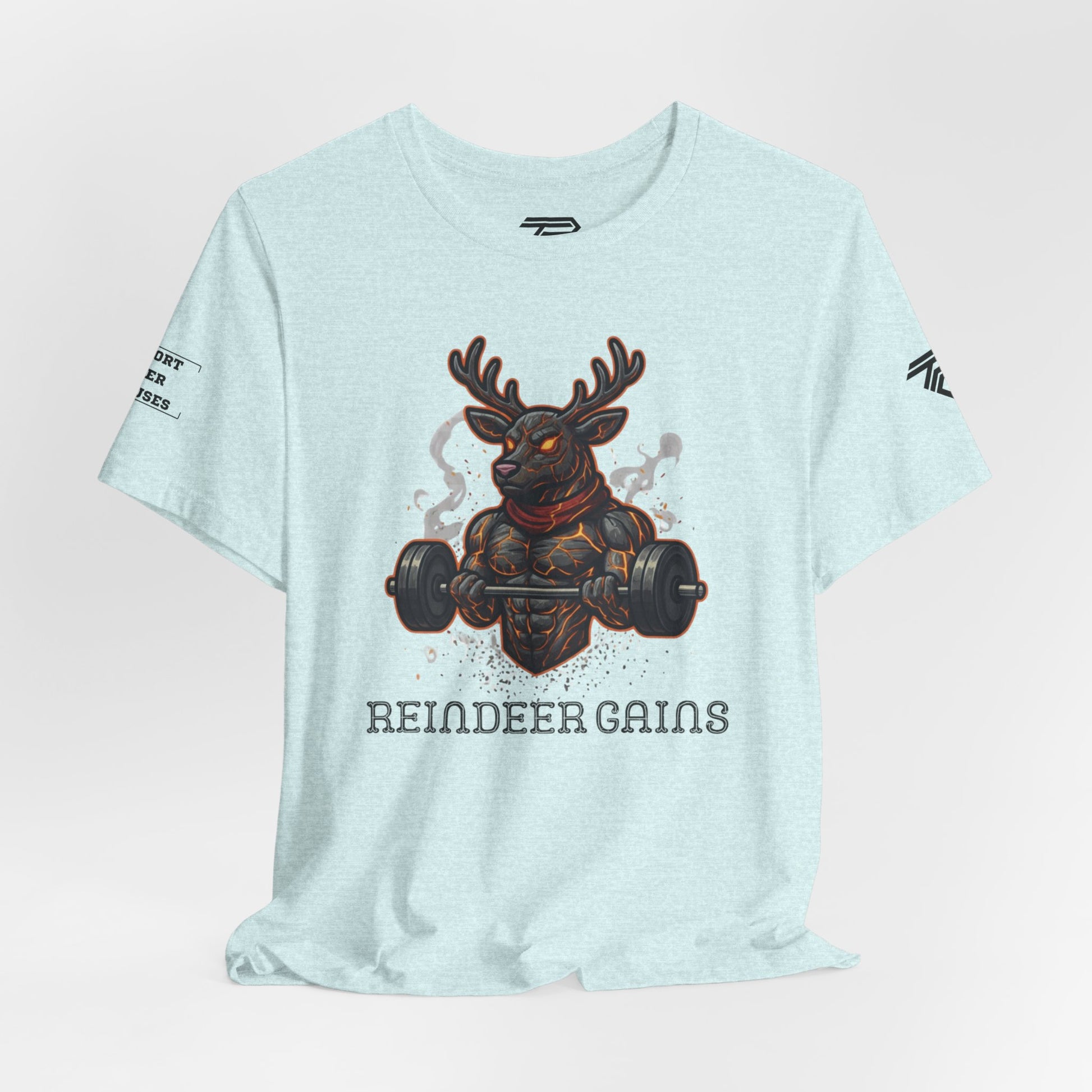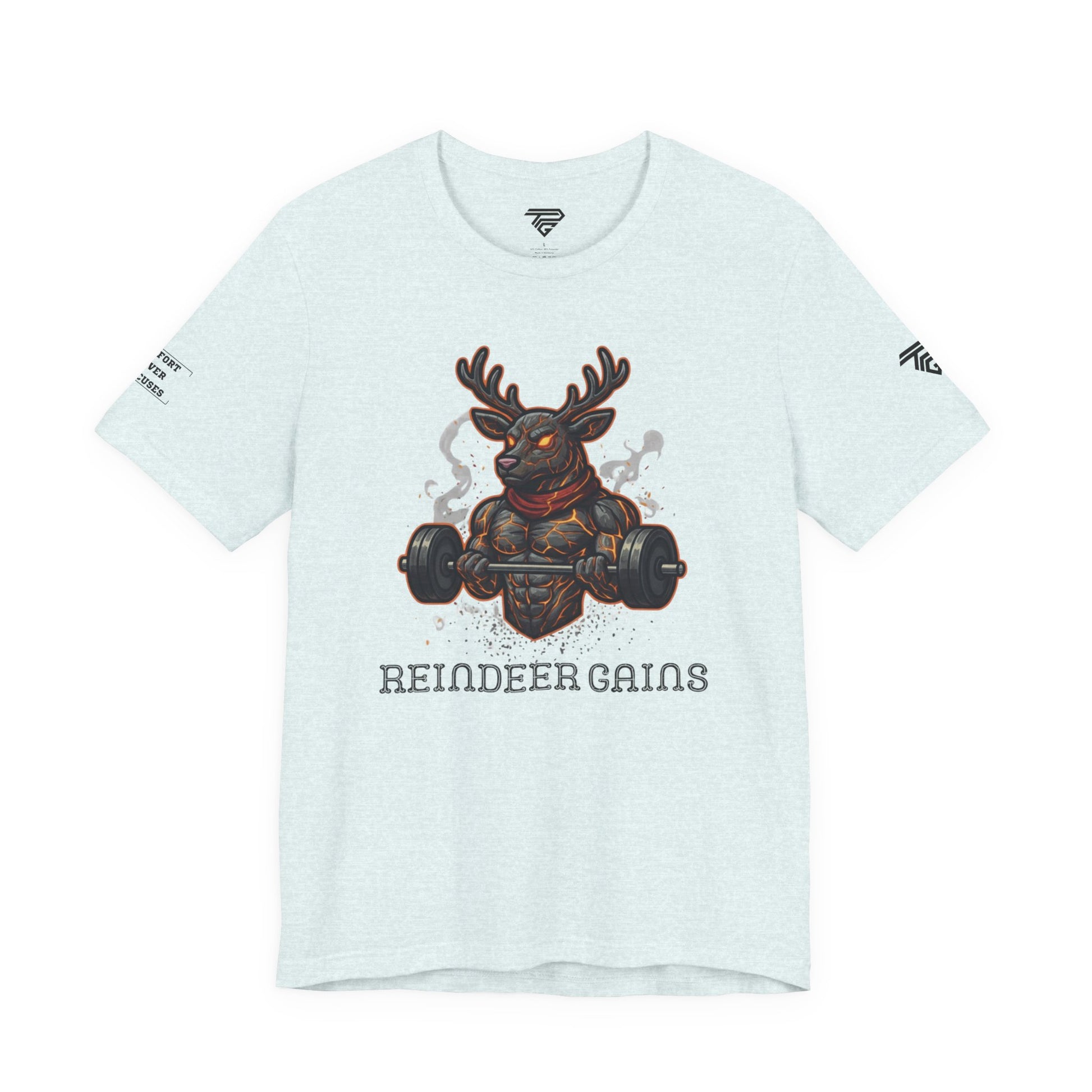 Reindeer Gains Gym T‑Shirt — Funny Christmas Workout Tee