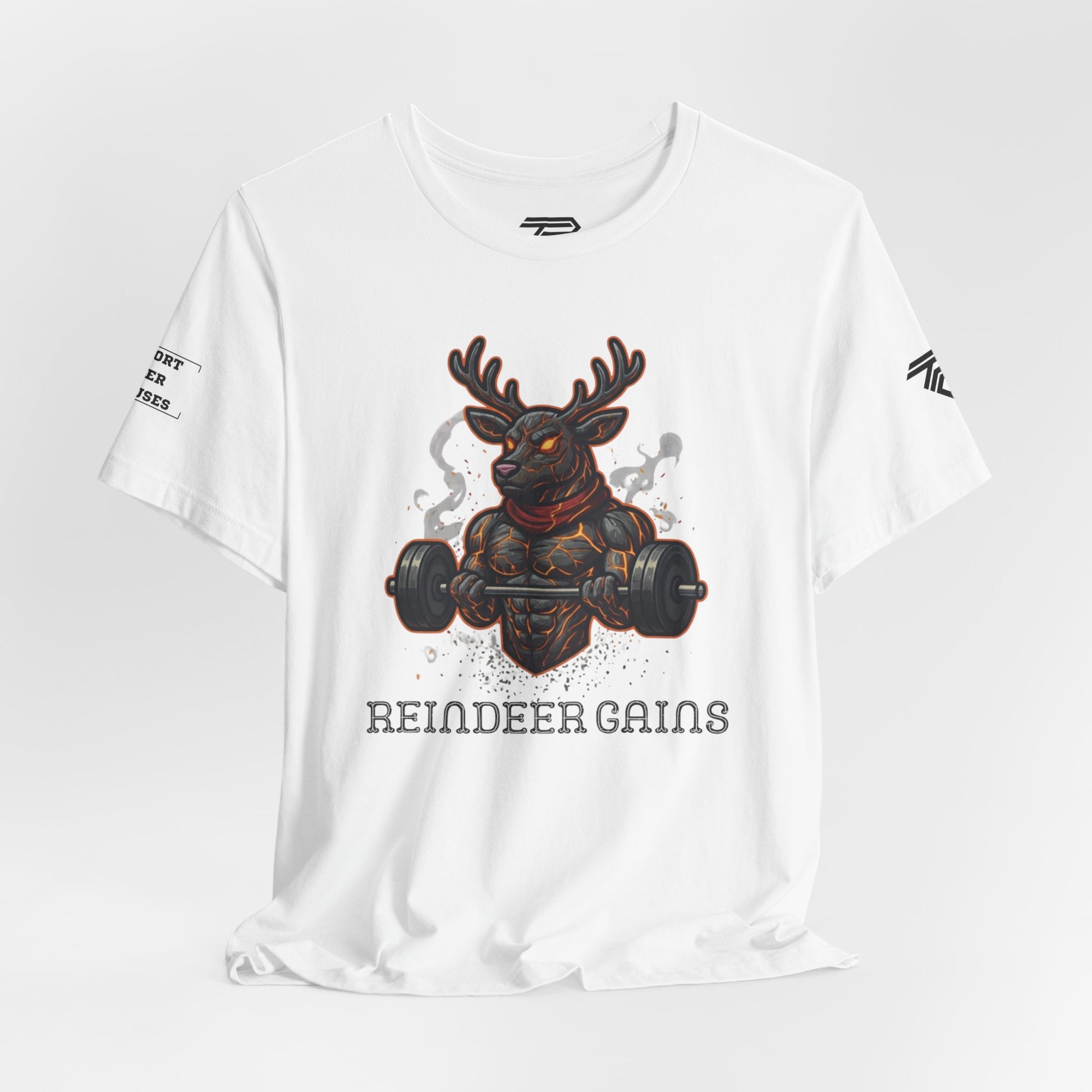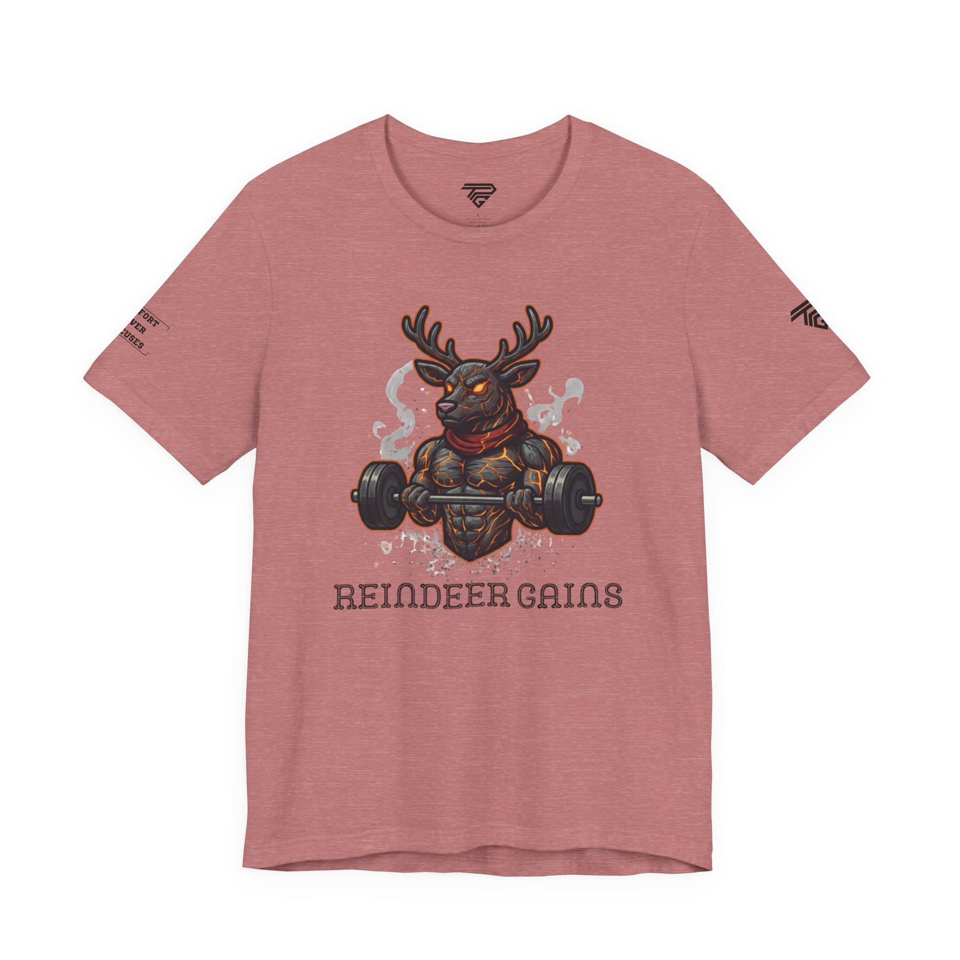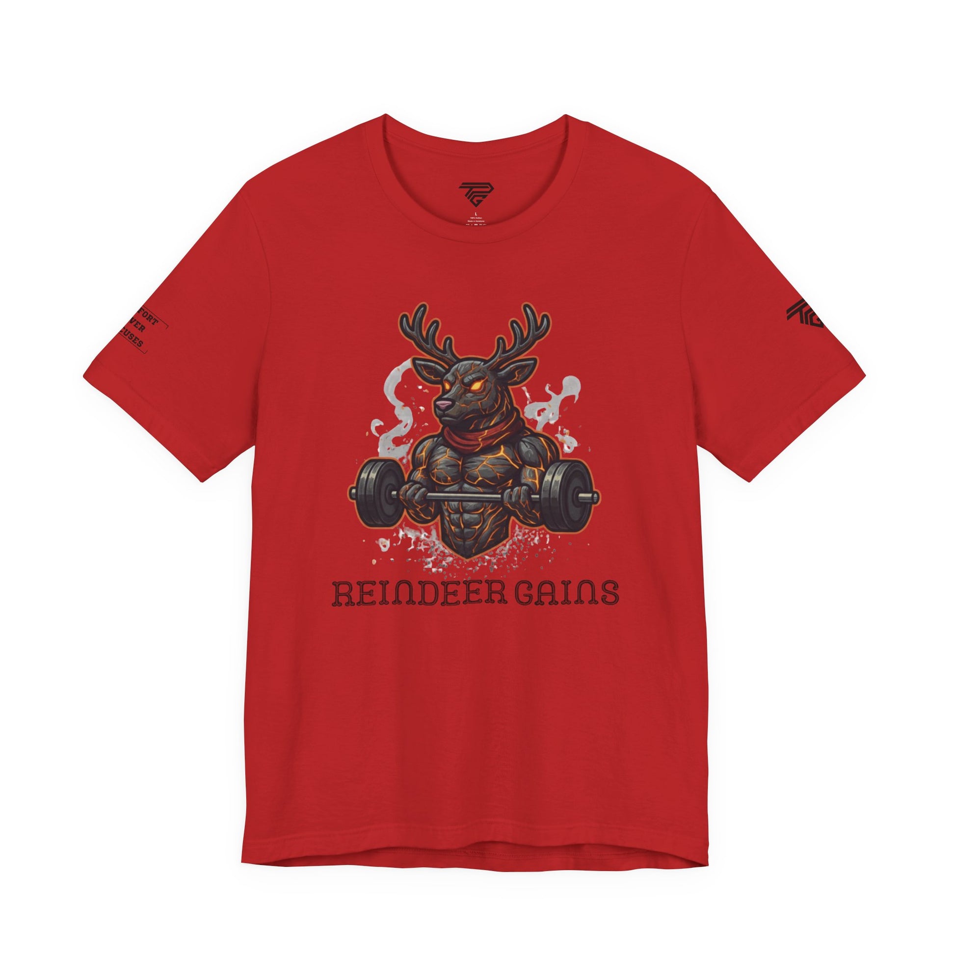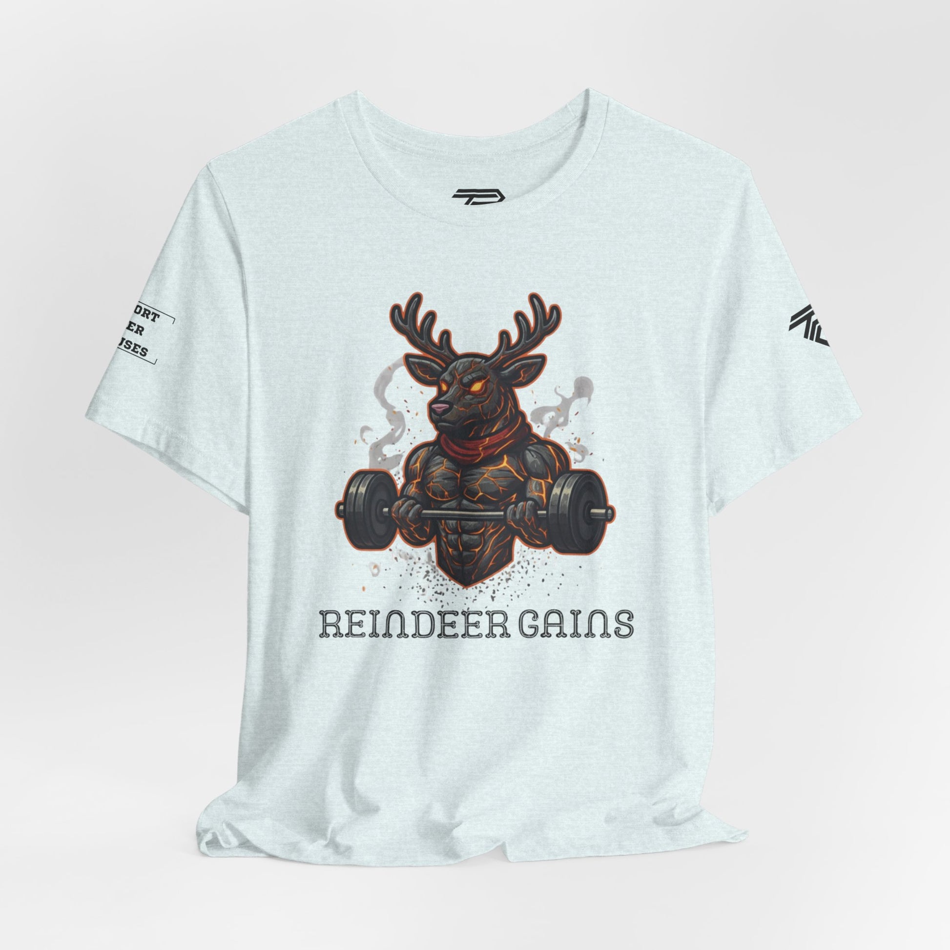 Reindeer Gains Gym T‑Shirt — Funny Christmas Workout Tee