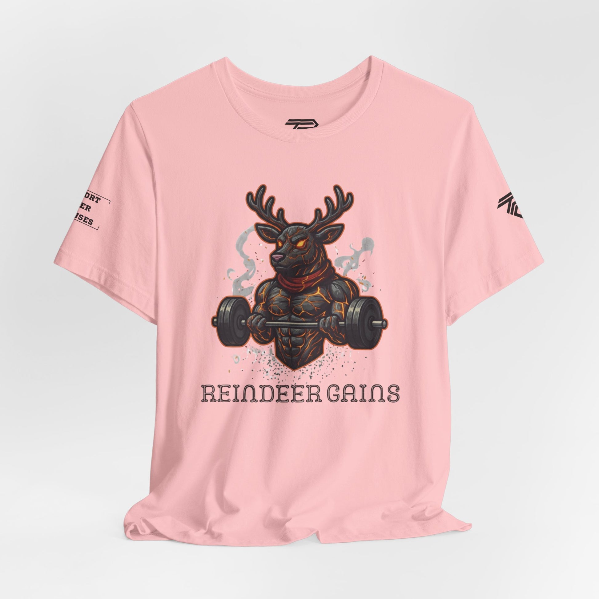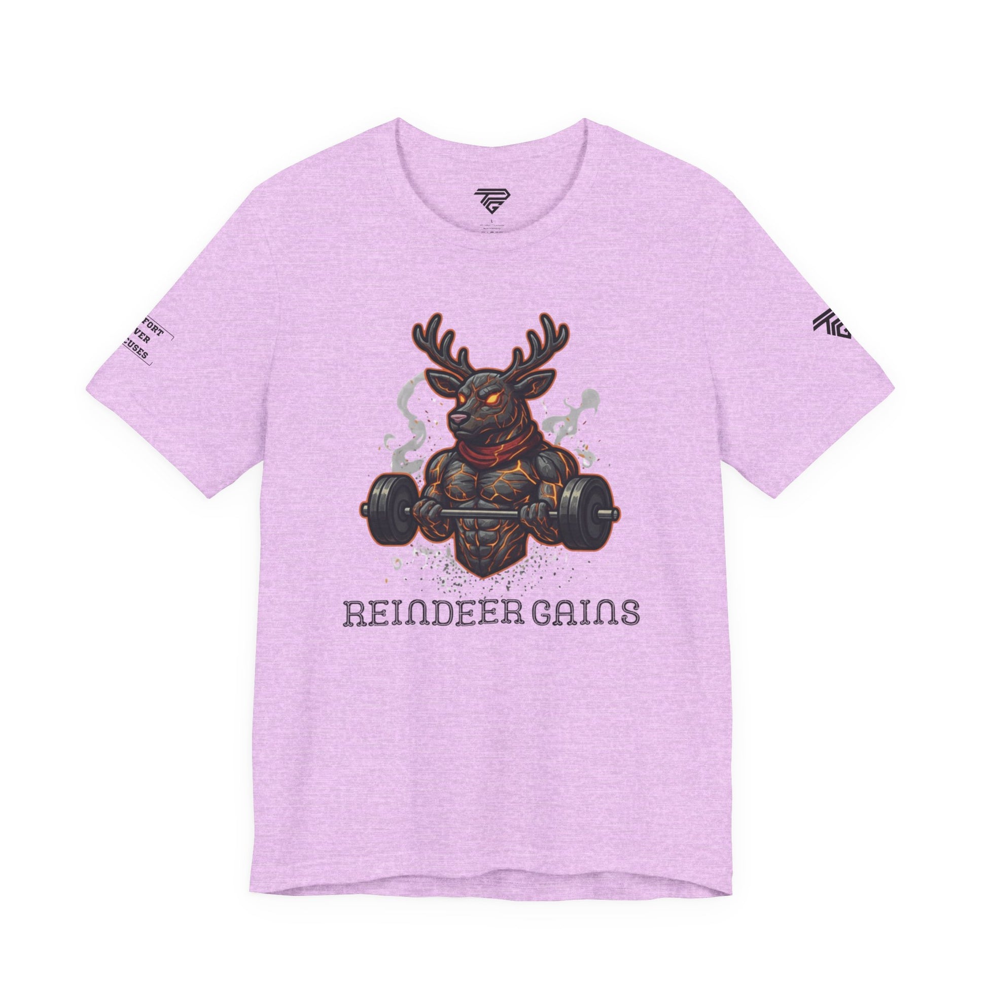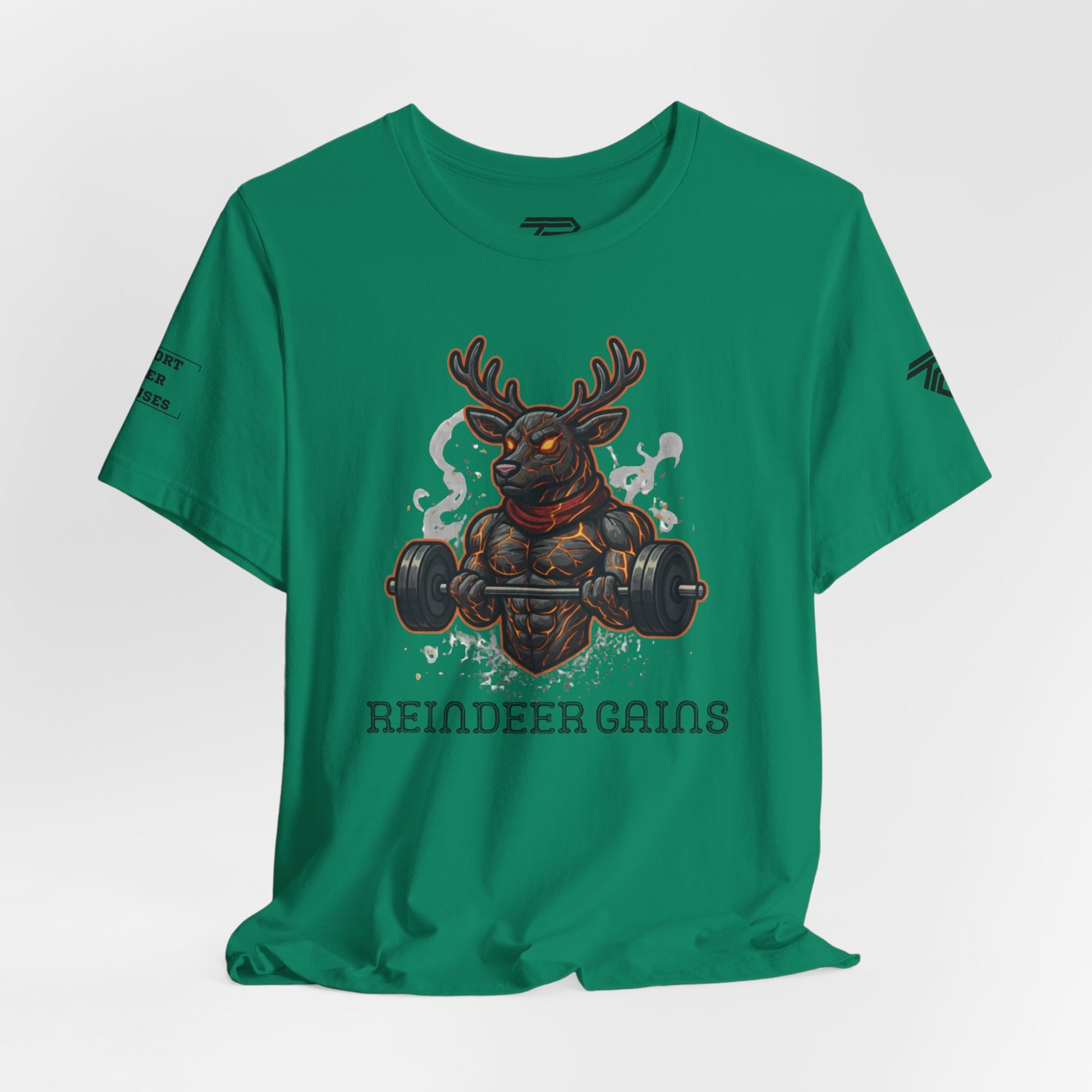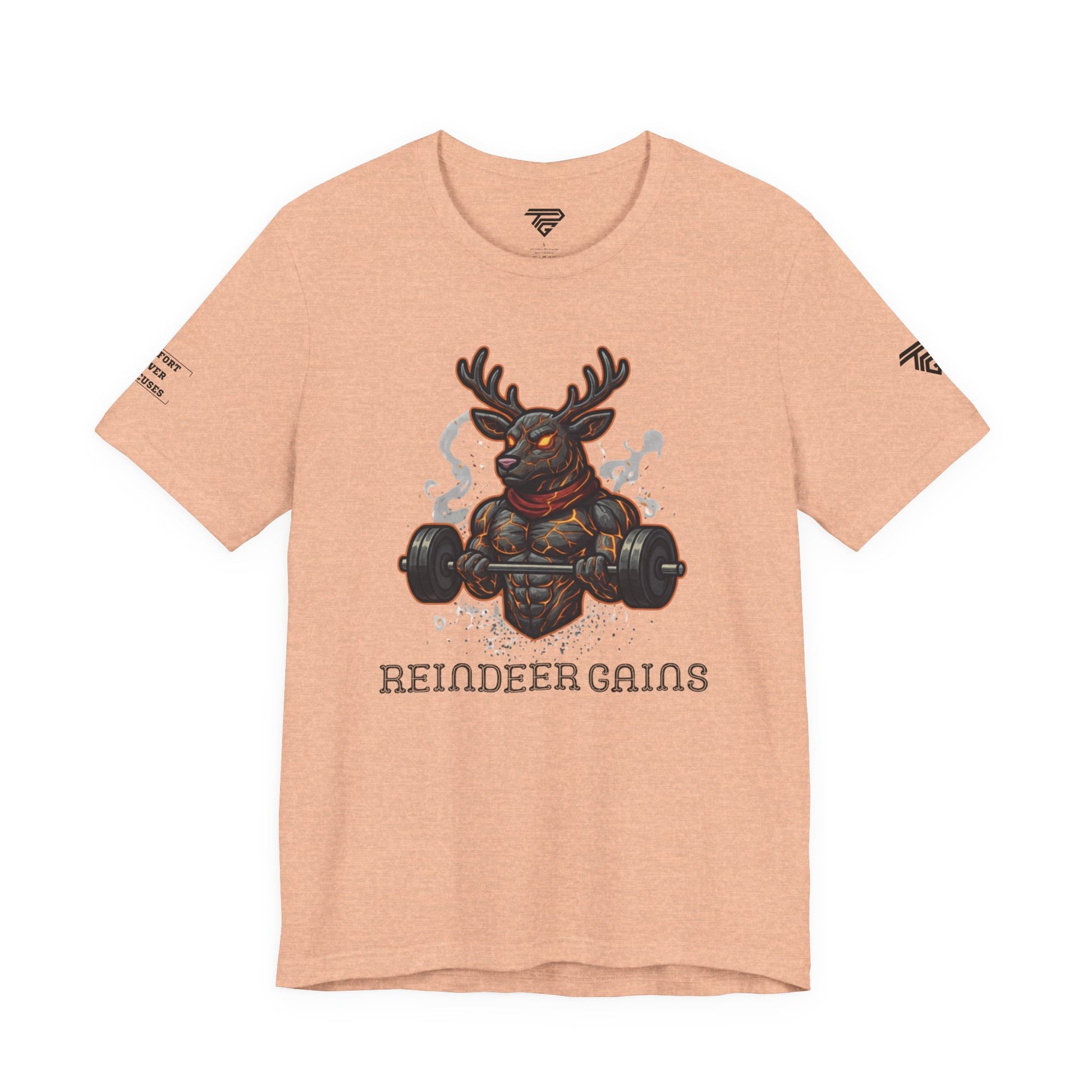 Reindeer Gains Gym T‑Shirt — Funny Christmas Workout Tee
