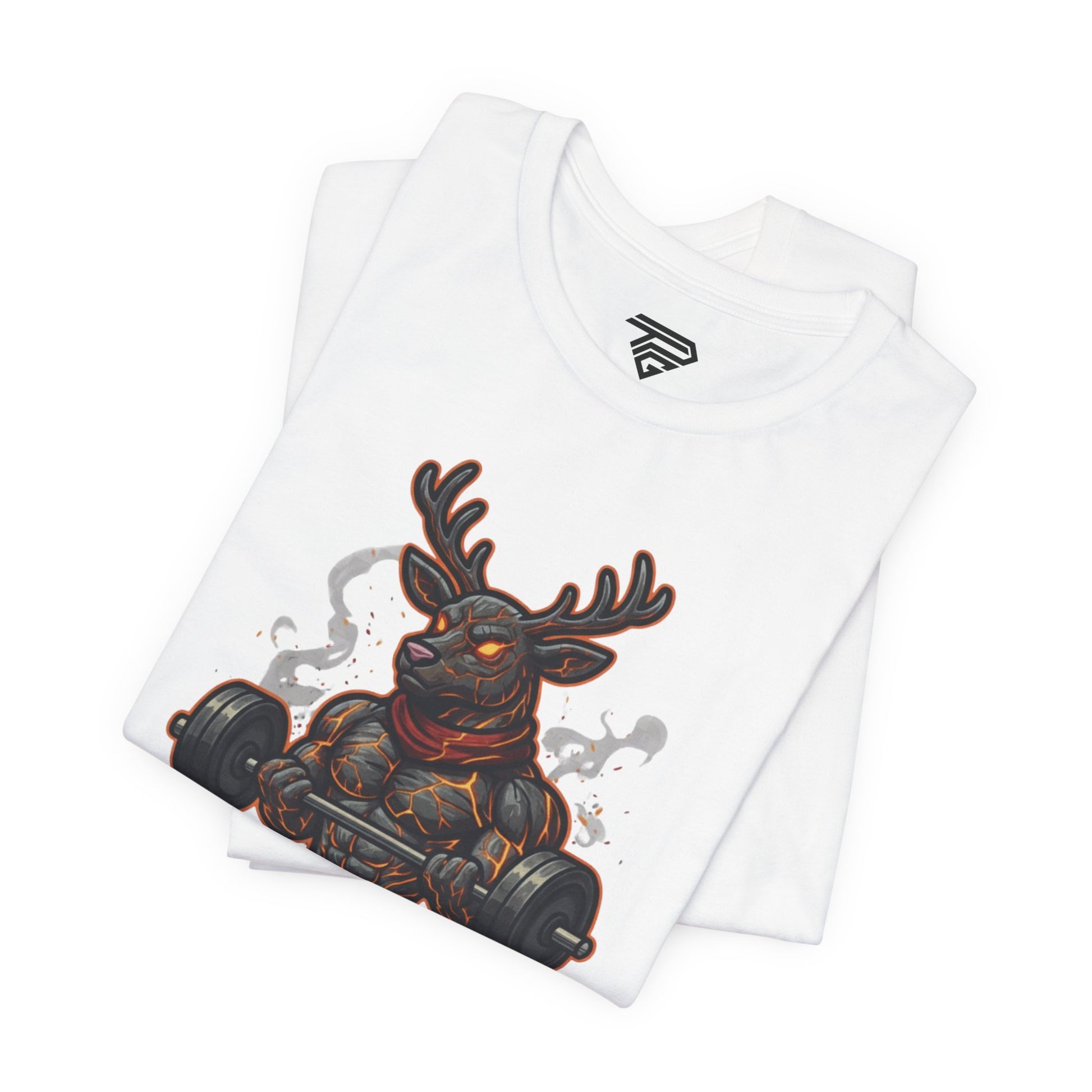 This lightweight jersey tee carries a playful, rugged spirit — a coffee-steamed reindeer hoisting a heavy barbell beneath the cheeky text “Reindeer Gains.” Soft Airlume cotton keeps the shirt breathable during early-morning workouts or long winter hikes, while the retail crew neckline and clean side seams hold a tidy shape under layers. Small sleeve prints and a neat neck label add subtle, gym-club details without shouting. Wear it to training sessions, seasonal runs, or casual evenings when you want a little holiday grit and humor in your rotation.